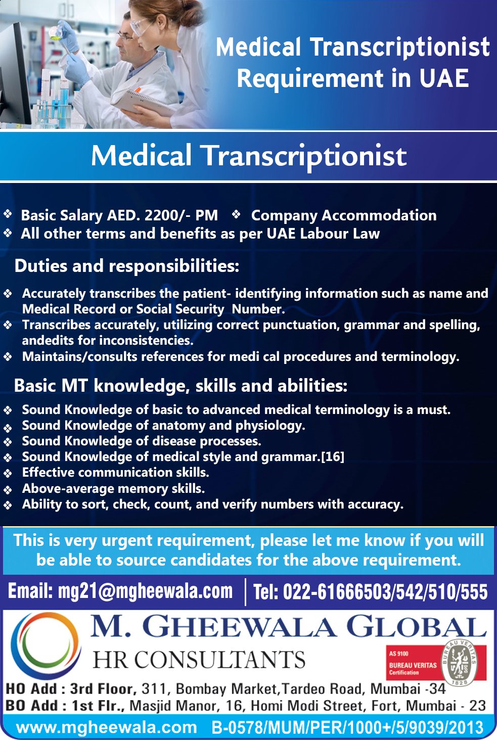M Gheewala Global Hr On Twitter Required Medical Transcriptionist For Uae Gheewala Gheewalaglobal Jobsinuae Ethicalrecruitment Https T Co Lxsxxs4vpt Twitter
